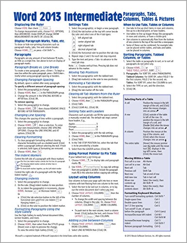 Results for Microsoft Word 2013 Intermediate Quick Reference: Paragraphs, Tabs, Columns, Tables & Pictures (Chea by Beezix Inc.